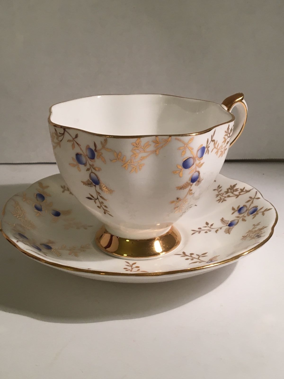 QUEEN ANNE Bone China Tea cup SET WITH FRUIT AND GOLD TRIM