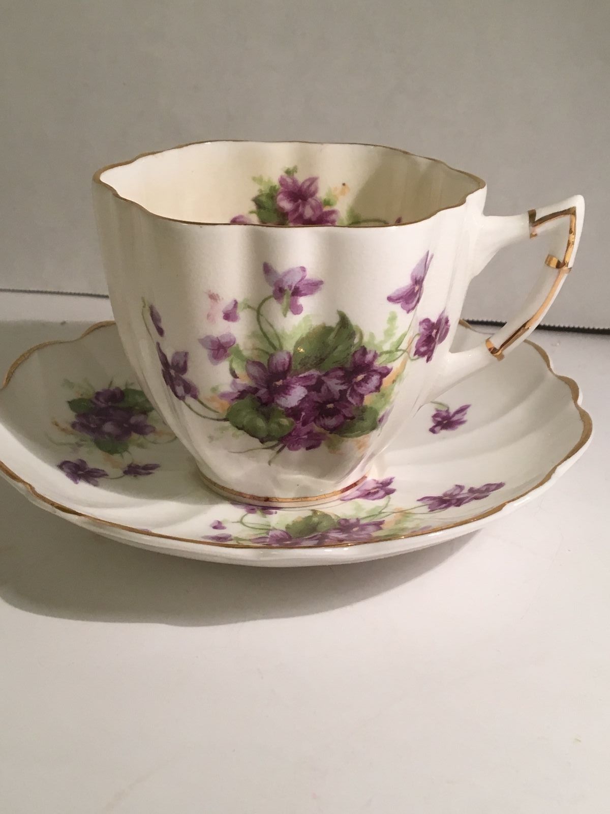 Bone China Tea cup SET ,PURPLE FLOWERS MADE IN ENGLAND