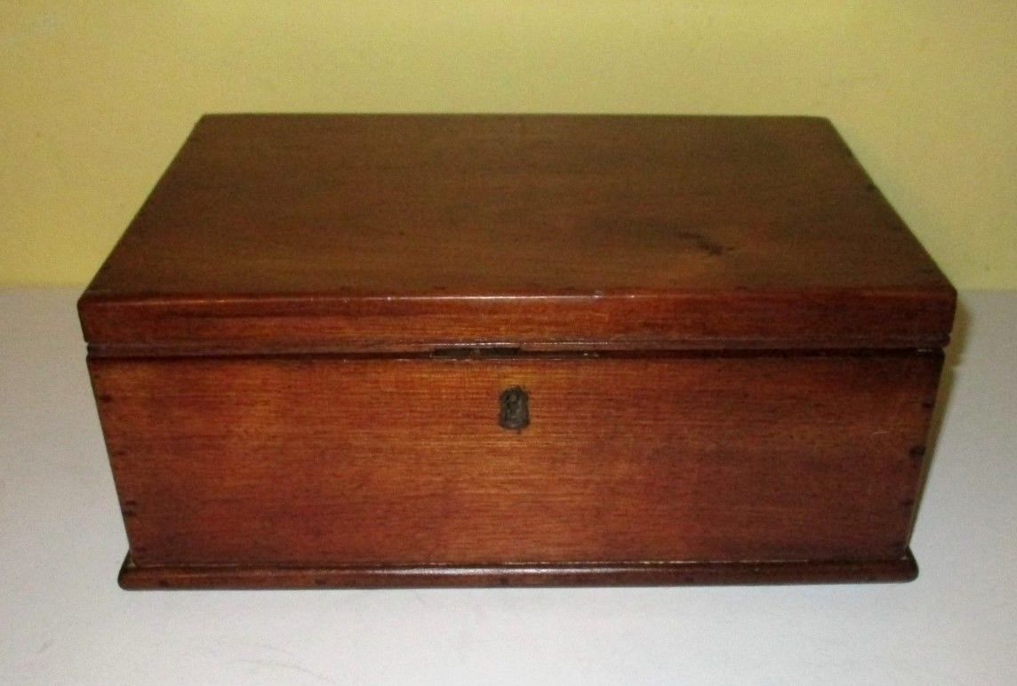 Antique WALNUT WOOD DOCUMENT LOCK BOX - Missing Key - Vintage
