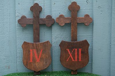 Title (ebay affiliate link): SUPERB PAIR: 19thC GOTHIC BLACK FOREST WOODEN OAK CROSSES WITH SHIELDS c1880s