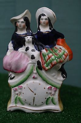 Title (ebay affiliate link): SUPERB MID 19thC STAFFORDSHIRE MALE & FEMALE FIGURINES WITH DOG & CLOCK c1860s