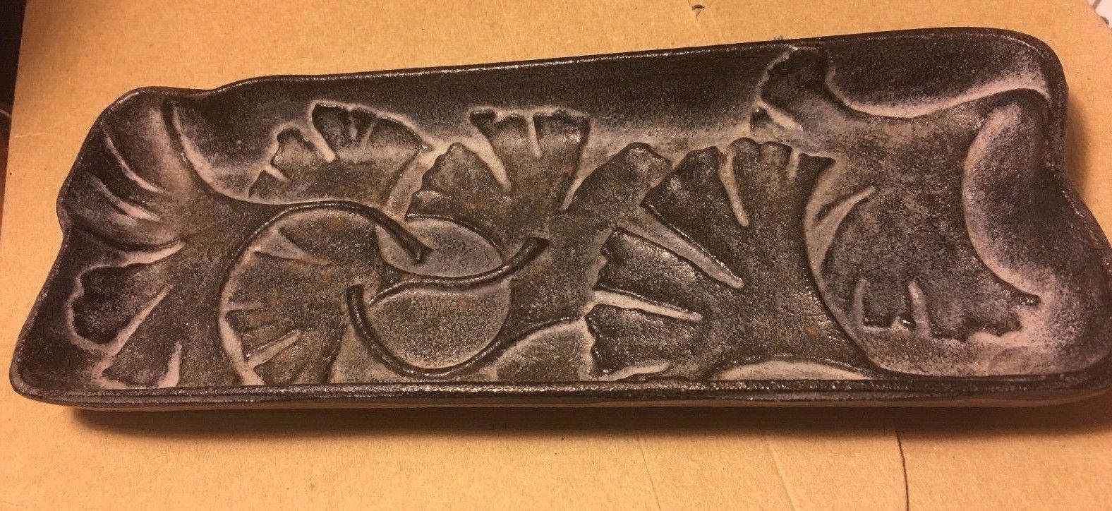 arts & crafts cast iron gingko leaf design trinket tray gorgeous!