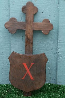 SUPERB 19thC GOTHIC BLACK FOREST WOODEN OAK CROSS WITH SHIELD c1880s