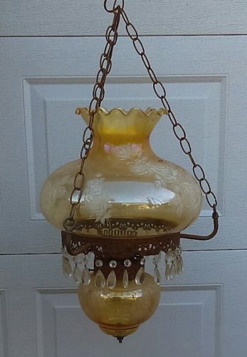 Title (ebay affiliate link): Vintage Antique Electric Brass Hanging Lamp w/rose design Glass Shade