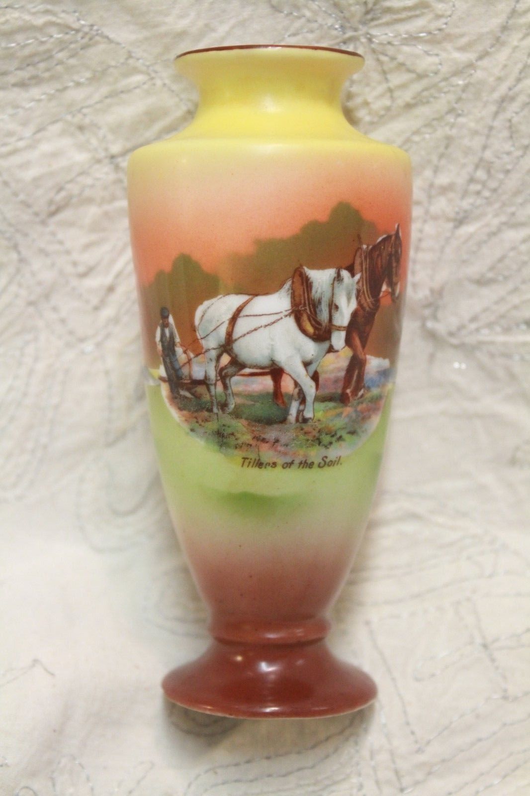 Title (ebay affiliate link): Lovely vintage-antique ceramic/china vase Czecho-Slovakian Farmer with horses