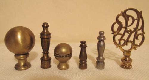 Title (ebay affiliate link): 6 pc. VINTAGE ANTIQUE SOLID BRASS LAMP FINIALS TOPPERS SHADE HOLDERS