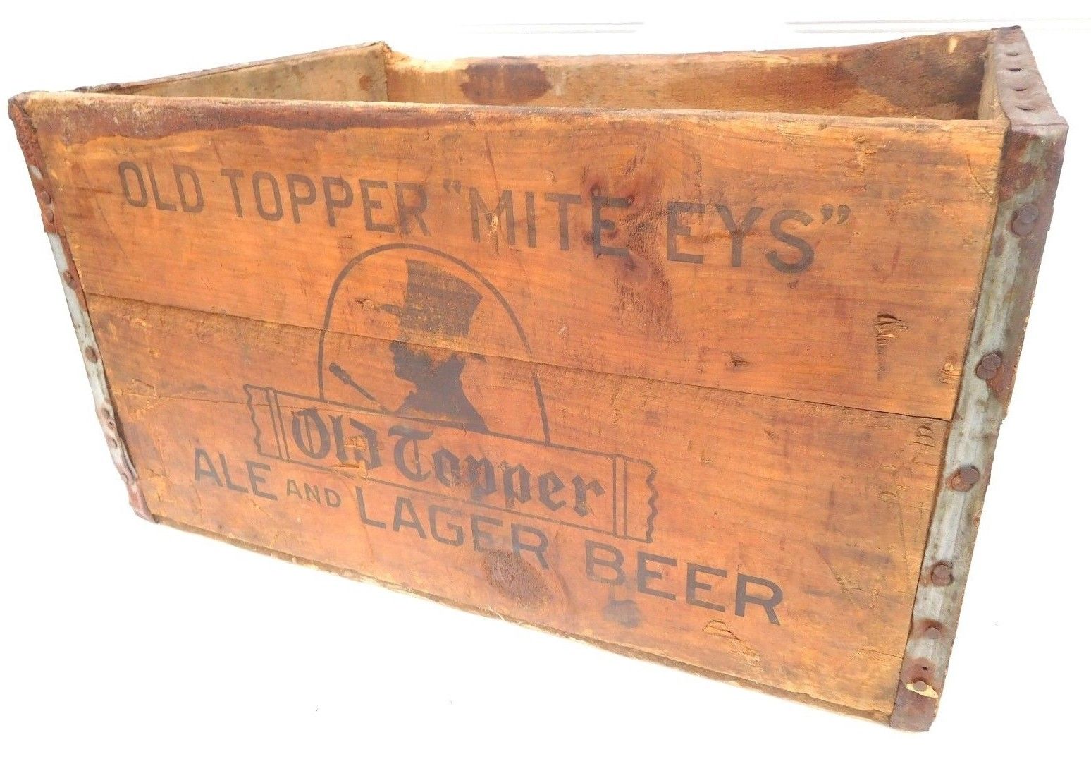 Title (ebay affiliate link): OLD TOPPER ALE ''MITE-EYS'' Rochester Brewing Co., Beer Advertising Wooden Crate