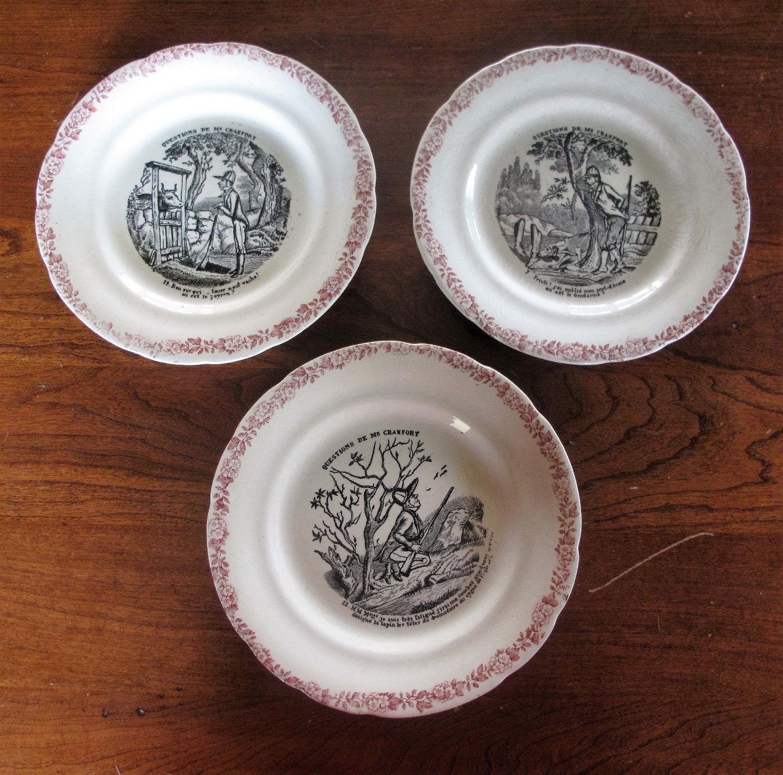 ANTIQUE 19`c French TERRE DE FER - HB&Cie 3 Collectable Porcelain PLATES