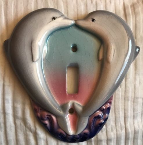Title (ebay affiliate link): Vtg DOLPHINS KISSING HEART Light Switch Plate Glazed Ceramic 1987 RONNIE''S USA