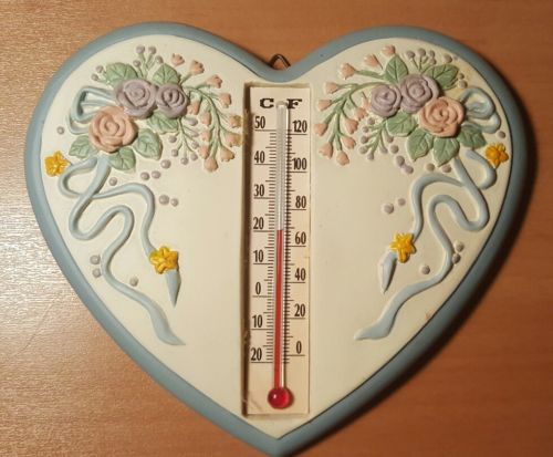 Title (ebay affiliate link): vintage heart with working thermometer white with pink purple flowers