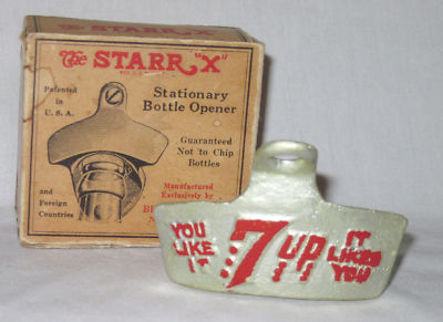Title (ebay affiliate link): NEW Vintage 1950's The Starr X 7 up Bottle Opener + Box