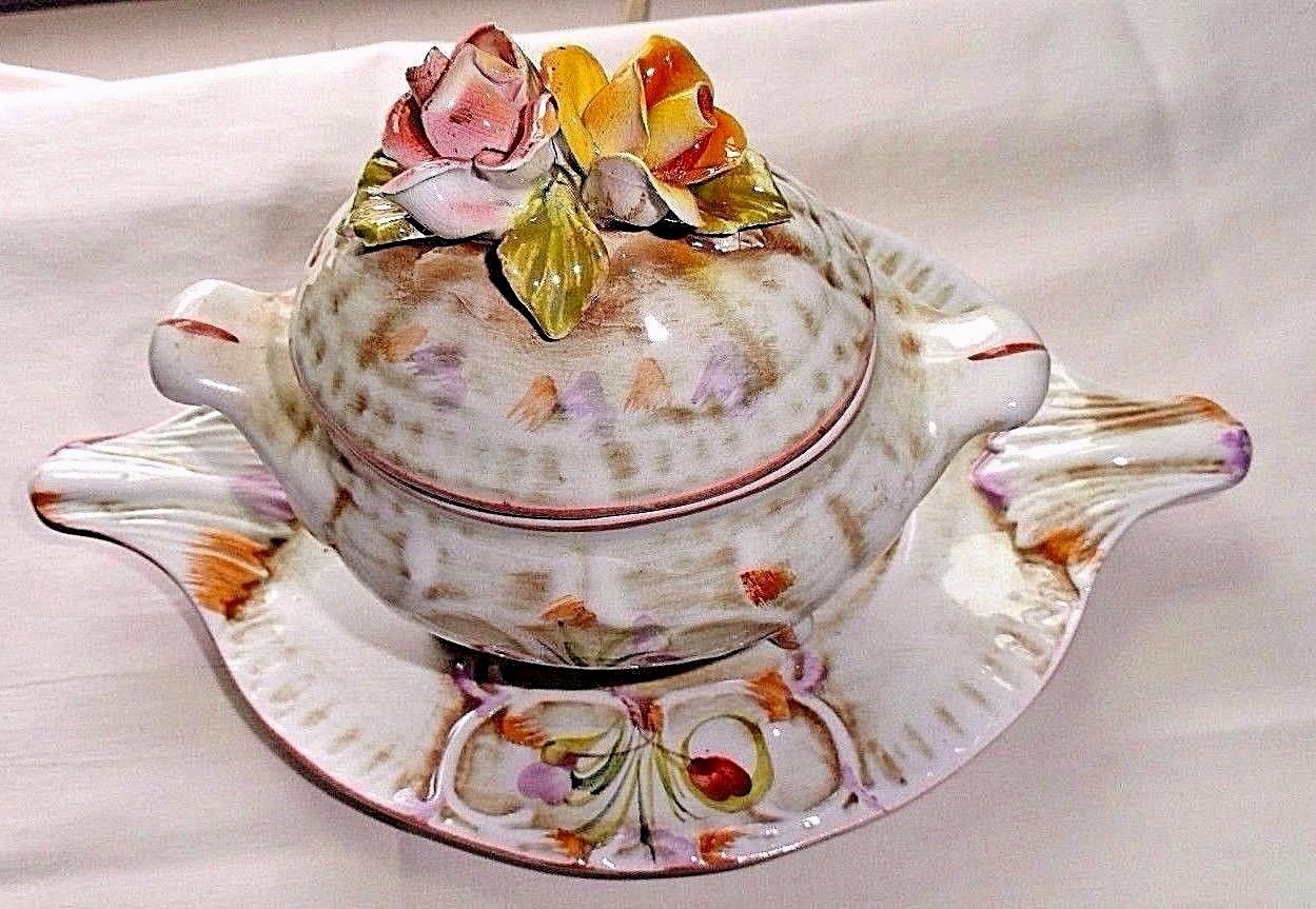 Title (ebay affiliate link): Vintage Italian Porcelain Roses~Small Covered Bowl w/Under Plate~Capodimonte