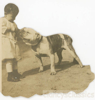 Title (ebay affiliate link): 1915 Little Boy Plays Tug o War w English Bull Dog cut out