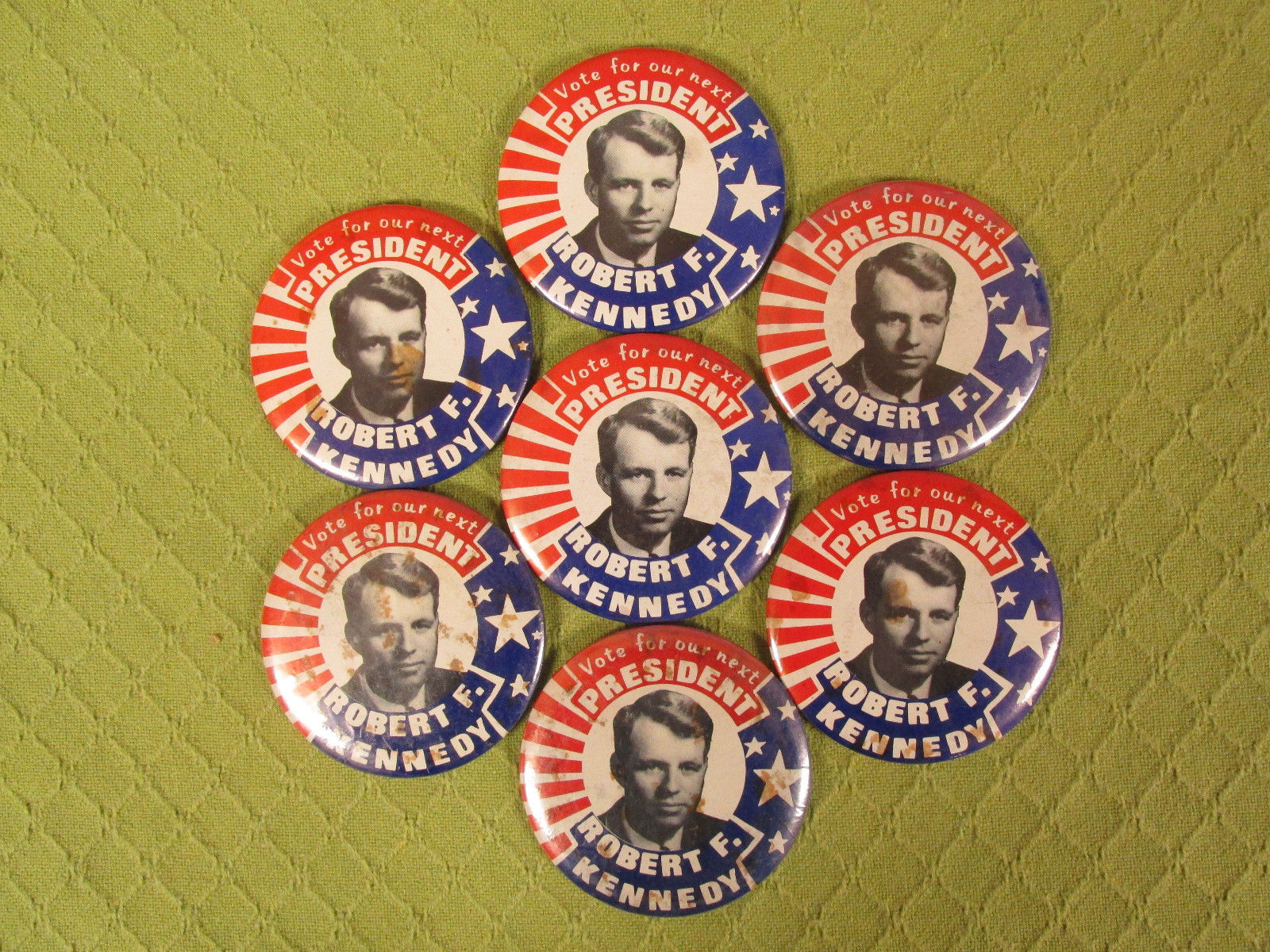 Title (ebay affiliate link): Lot of 6 Robert F. Kennedy for President 1968 Pin-Back Campaign Buttons 3 3/8" B