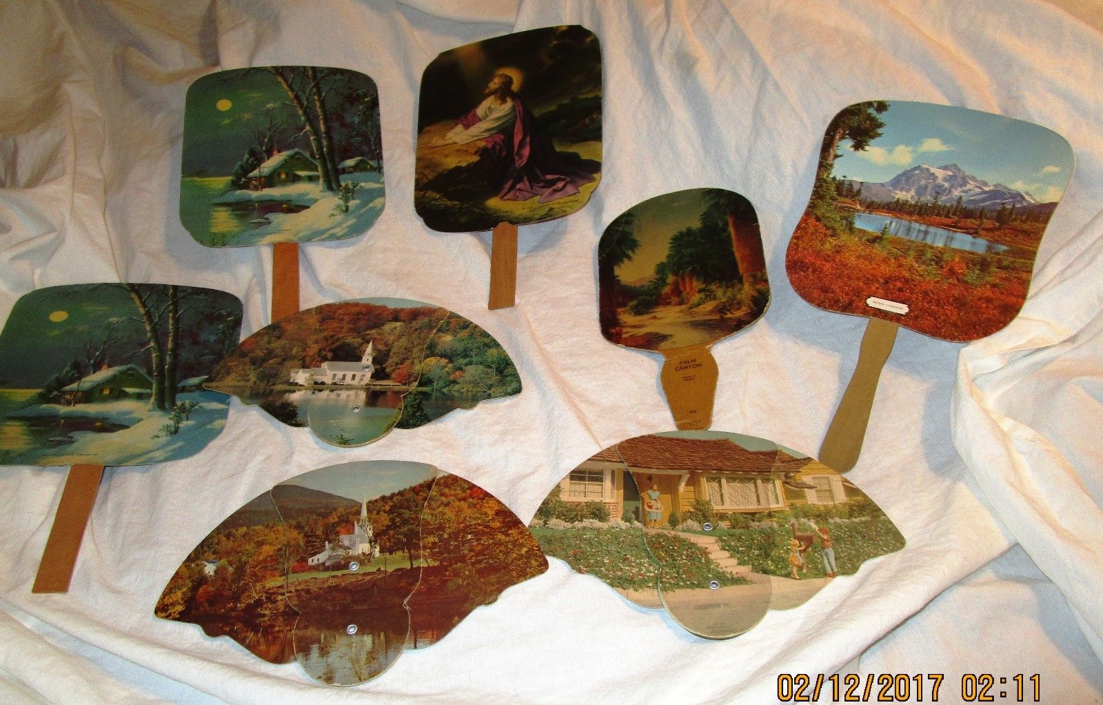 LOT OF EIGHT (8) VINTAGE 1900s ADVERTISING HAND FANS