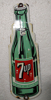 PORCELAIN SIGN 7UP 7X2 INCHES DIE CUT APPROX