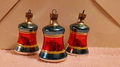 3 Antique Christmas Ornaments Bells Blown Mercury Glass Red White blue
