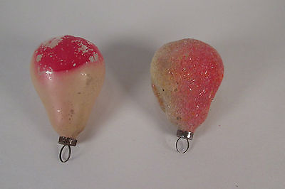 2 Antique Unsilvered Pear Christmas Ornaments Crushed Glass & Hand Painted