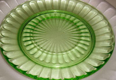 5 DIFFERENT GREEN DEPRESSION GLASS 5 IN PLATES