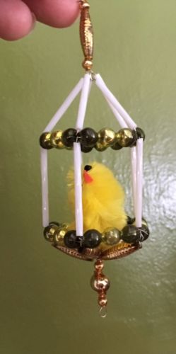 Title (ebay affiliate link): Vintage MERCURY GLASS BEADED "EASTER CHICKIE-in-BIRDCAGE" Glass Ornament 4"