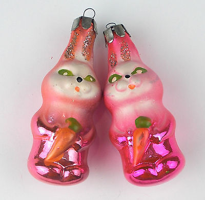 2 Vintage USSR Russian Silver Glass Christmas Tree Ornaments Decoration Rabbits