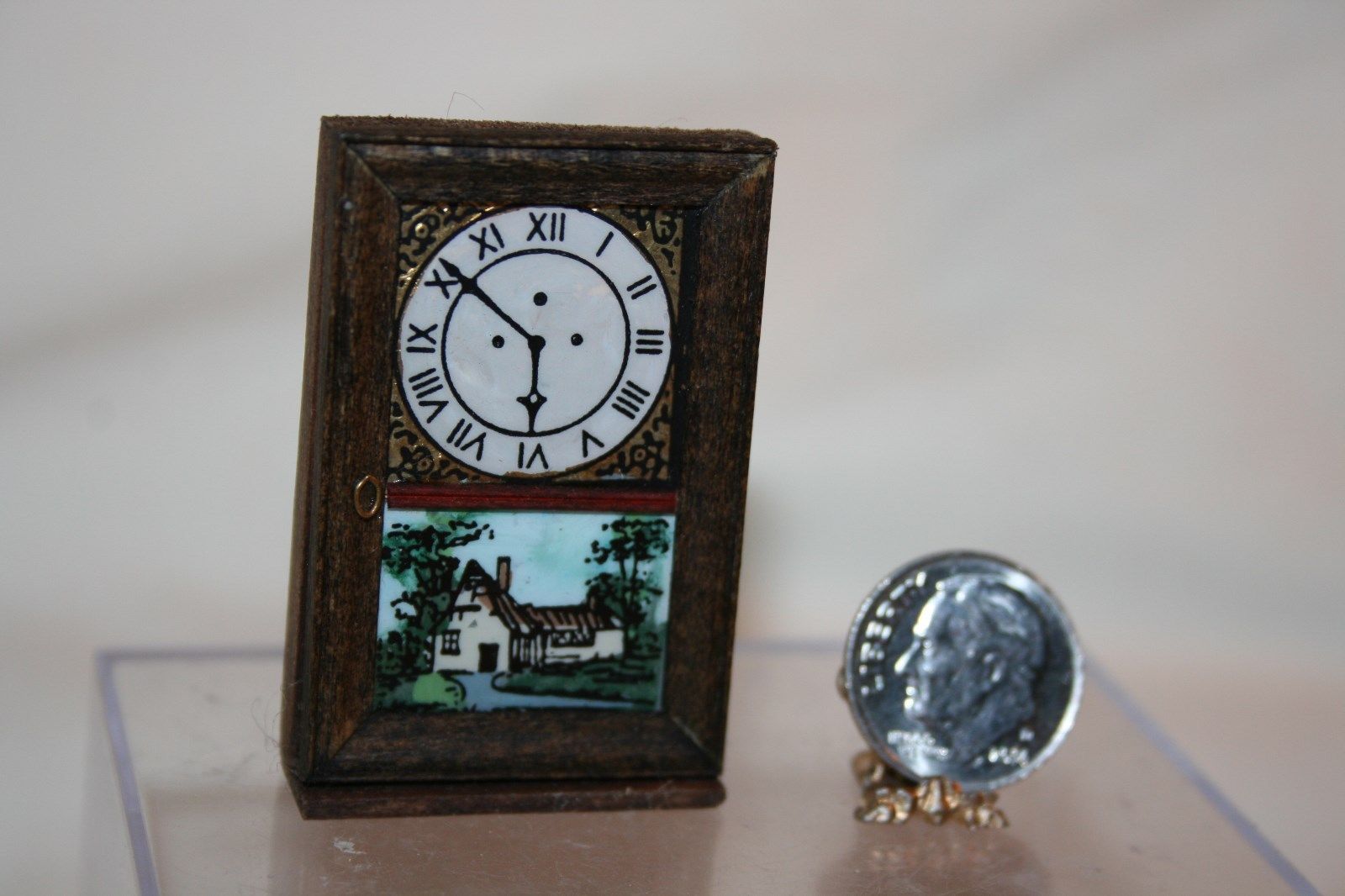 Title (ebay affiliate link): Miniature Dollhouse Replica Antique Wall/Mantel Clock Reverse Painting of House