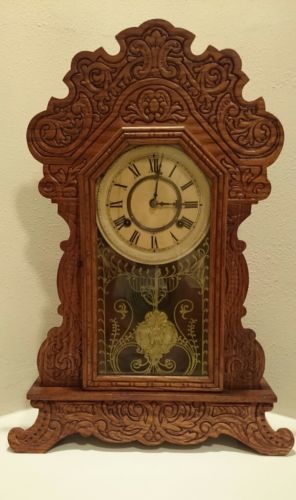 Title (ebay affiliate link): Antique Waterbury Clock Co. Gingerbread Kitchen / Shelf / Mantel Clock c. 1920
