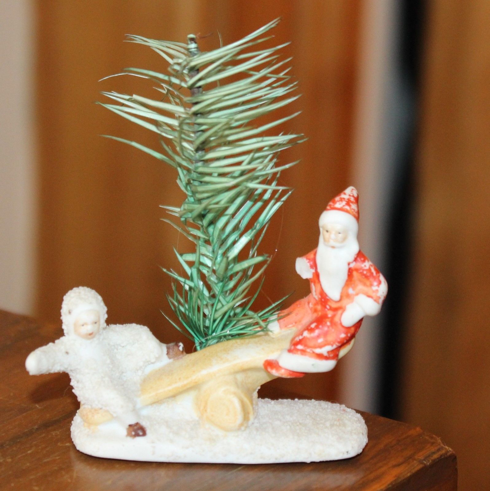 Title (ebay affiliate link): Santa & Snow Baby, on Teeter Totter. Germany.1920s. So Tiny, Detailed. Problem.