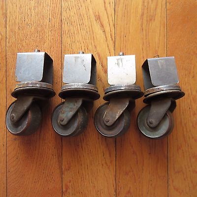 Set Lot Of 4 Small Brass Wheels Rusty Swivel Caster Square Top 2" Clearance