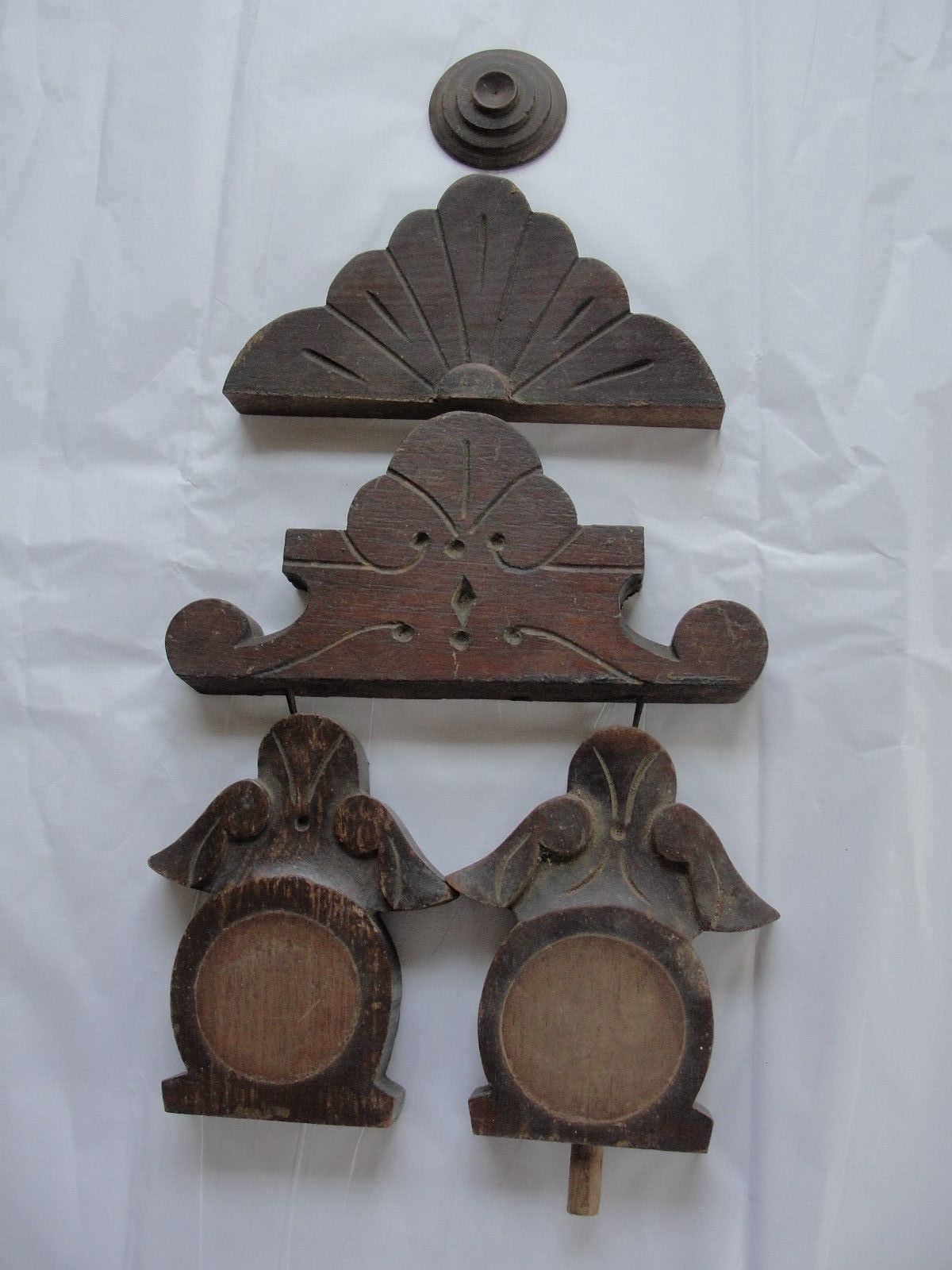 Title (ebay affiliate link): 4 pcs. Antique Decorative Solid Wood Pediment Salvaged Clock Furniture Parts Lot