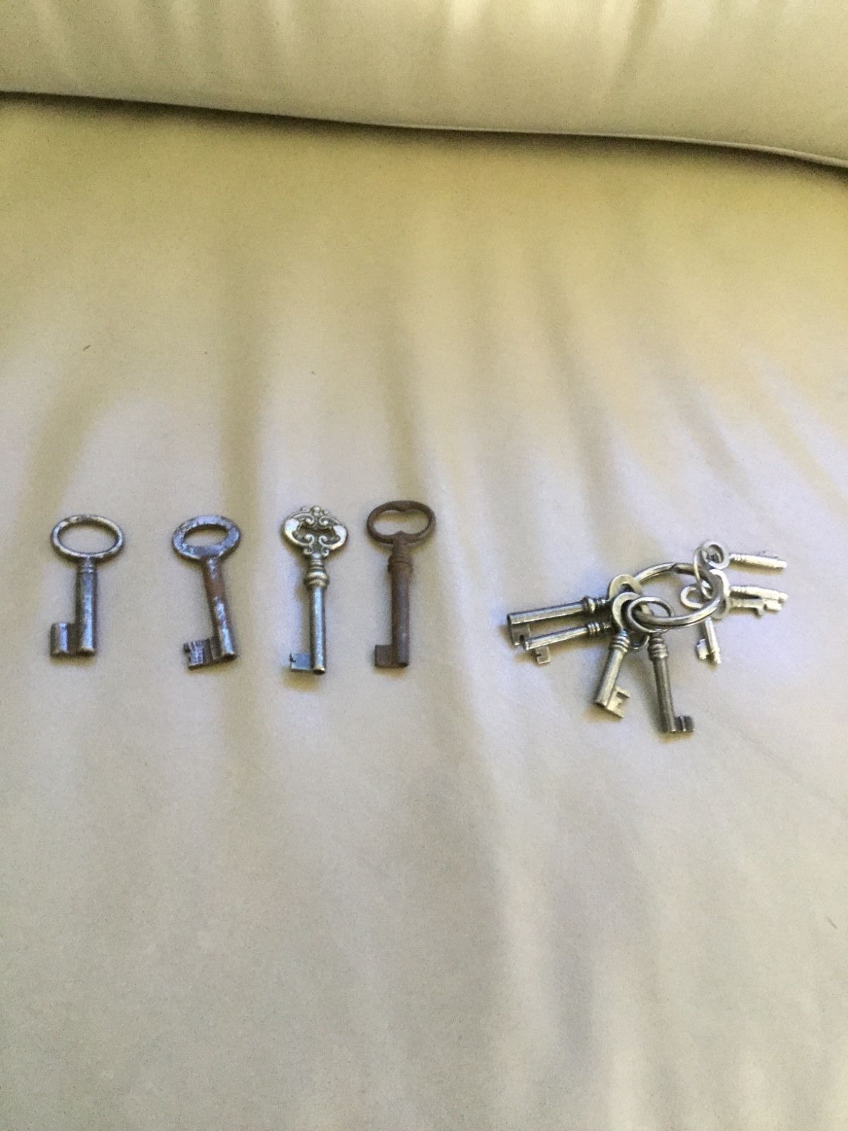 12 ANTIQUE KEYS FOR CABINETS OR DRESSERS