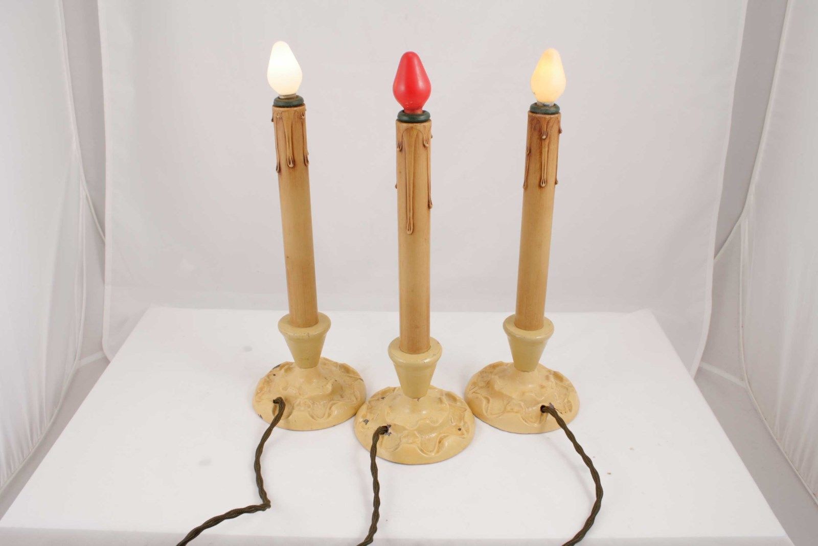 Title (ebay affiliate link): 3 Iron Old Electric Christmas Candlesticks 15 Watt 110-120 Volts Original Boxes