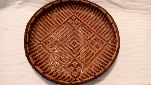 Title (ebay affiliate link): Vintage Large Round 17" Hand Woven Wicker Wood Base Basket Wall Decor