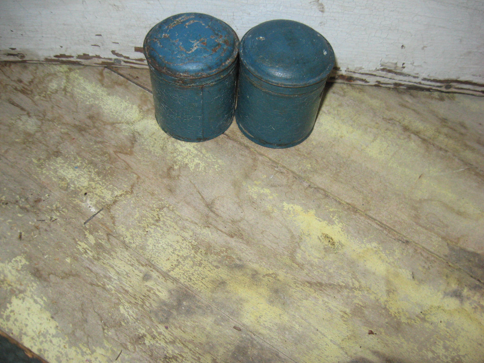 2 CHARMING ANTIQUE SPICE TINS BEST OLD BLUE PAINT AAFA NR