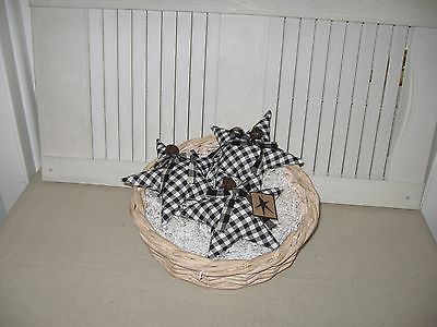 Handmade Primitive Fabric Bowl Fillers "Black & White Checked Stars" Set of 3