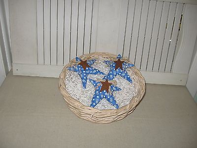 Handmade Primitive Fabric Bowl Fillers Blue Stars Set of 3