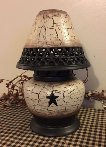 Title (ebay affiliate link): PRIMITIVE CRACKLE LAMP POTPOURRI FLAMELESS CANDLE TAN BLACK STAR COUNTRY DECOR