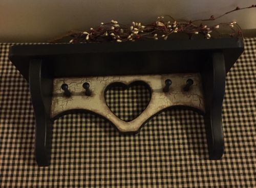 Title (ebay affiliate link): PRIMITIVE CRACKLE SHELF WOOD BLACK TAN COUNTRY FARMHOUSE DECOR SOLID WOOD