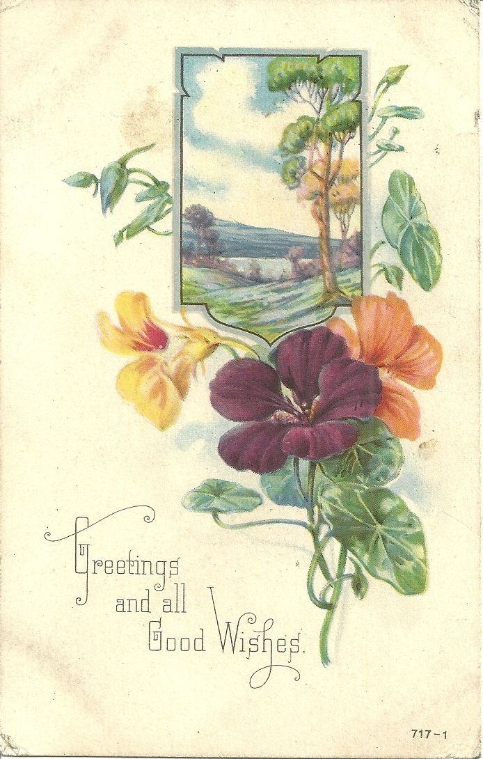 Title (ebay affiliate link): VINTAGE 1915-1924 POSTCARD - "GREETINGS AND ALL GOOD WISHES" WITH COUNTRY SCENE