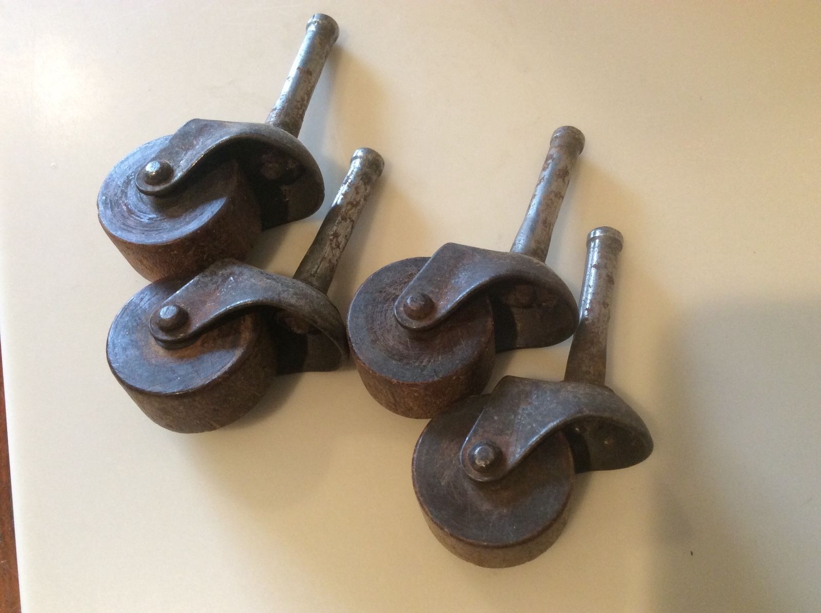Title (ebay affiliate link): Set of 4 Vintage Antique Wooden Furniture Wheels,Casters,Rollers , Wood & Metal
