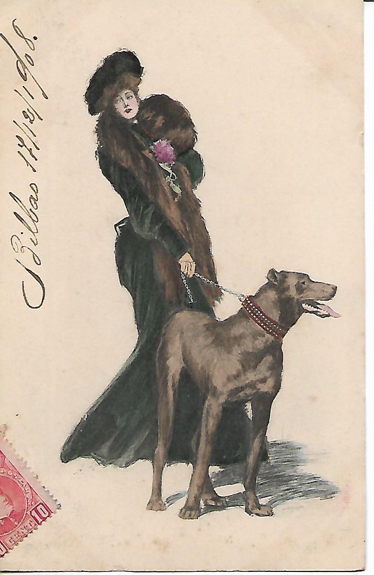 19??-VINTAGE ART NOUVEAU -SIGNED-UNDERWOOD CLARENCE-WOMAN WITH DOG OLD PC-153