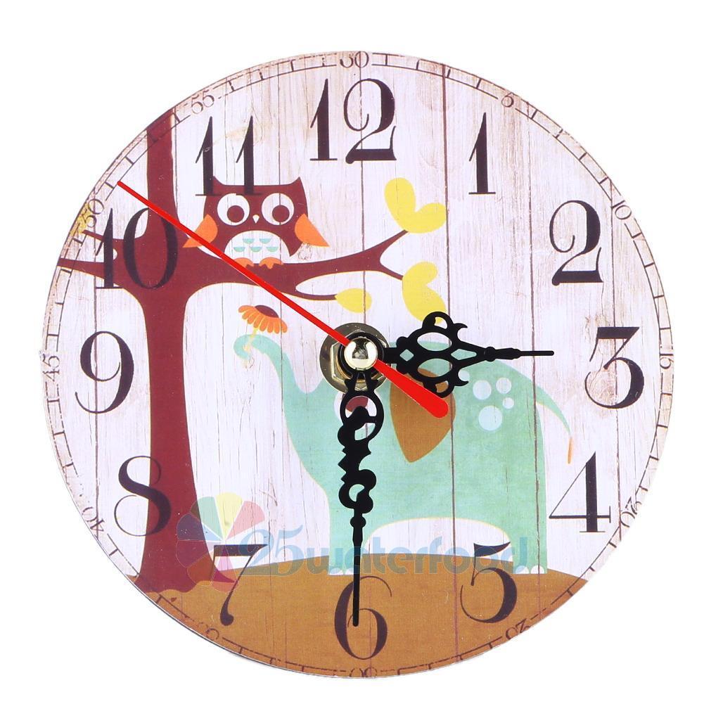 Antique Clock Wall Rustic Vintage Style Wooden Round Clocks Home Office Decor