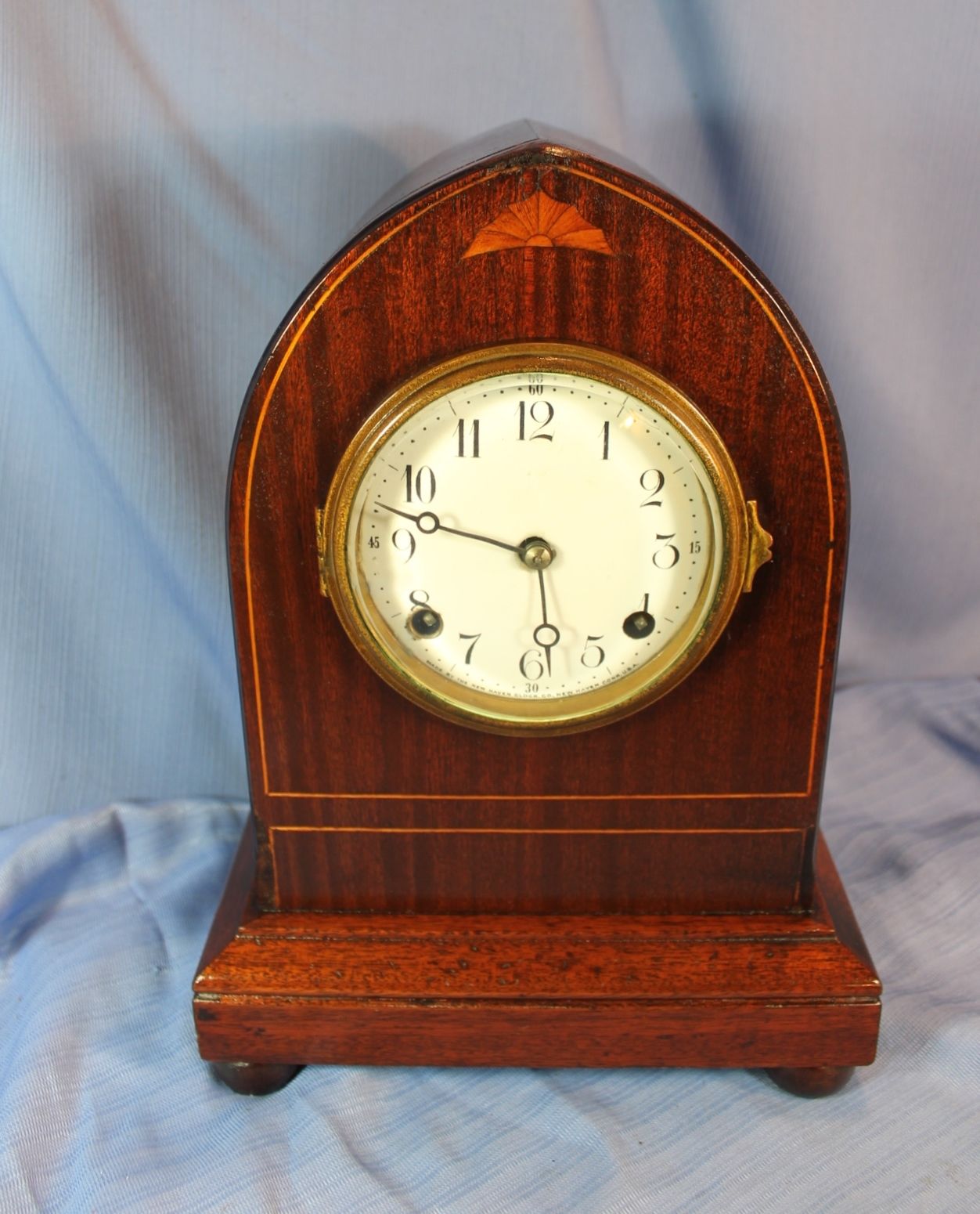 Title (ebay affiliate link): NEW HAVEN ANTIQUE ROUND GOTHIC MANTLE CLOCK ALL ORIGINAL LOOKS/RUNS GREAT!