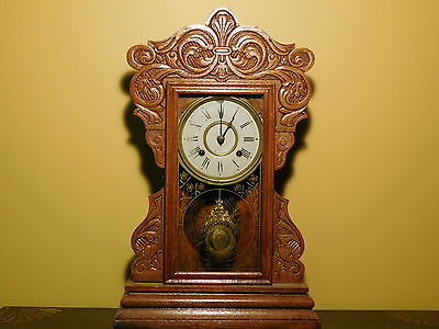 Title (ebay affiliate link): Antique The New Haven Clock Co. Gingerbread Style Mantle Clock w/ Key & Pendulum