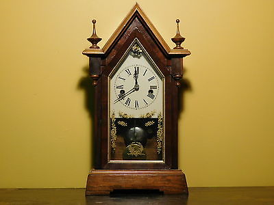 Title (ebay affiliate link): Late 1800''s Antique Jerome & Co. Steeple Style Mantle Clock with Key & Pendulum