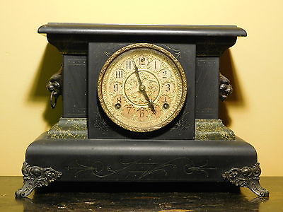 Antique Sessions Clock Company Mantle Clock With Lion''s Heads