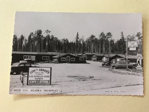 Title (ebay affiliate link): Mile 122, Alaska Highway, Lum N Abners Cafe Store Cabins, Bilvic Rppc Postcard
