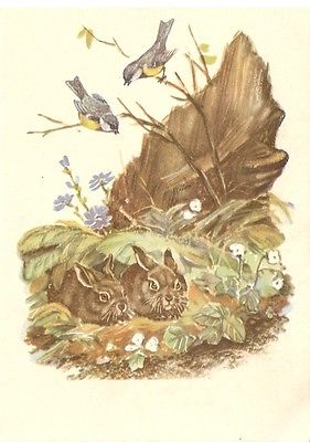 1957 Soviet USSR Russian Postcards CCCP hare bird