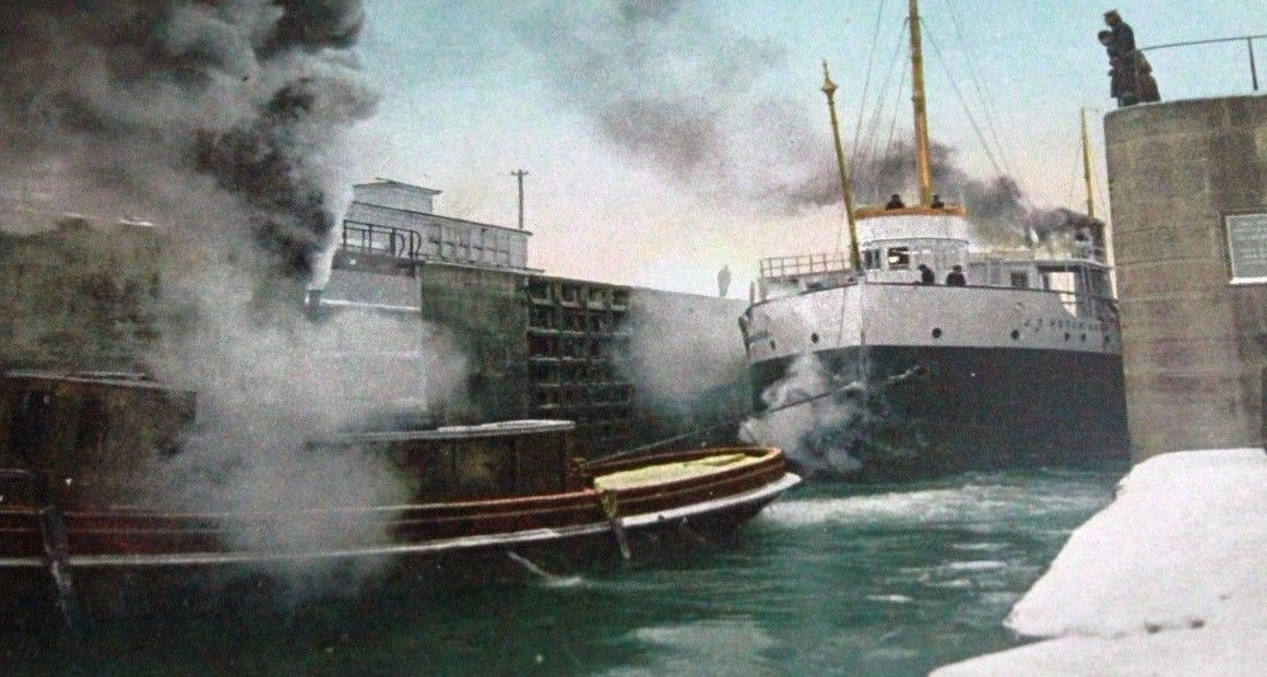 Sault Ste Marie MI Steamer J Hutchinson Soo Locks Steamboat Old Postcard