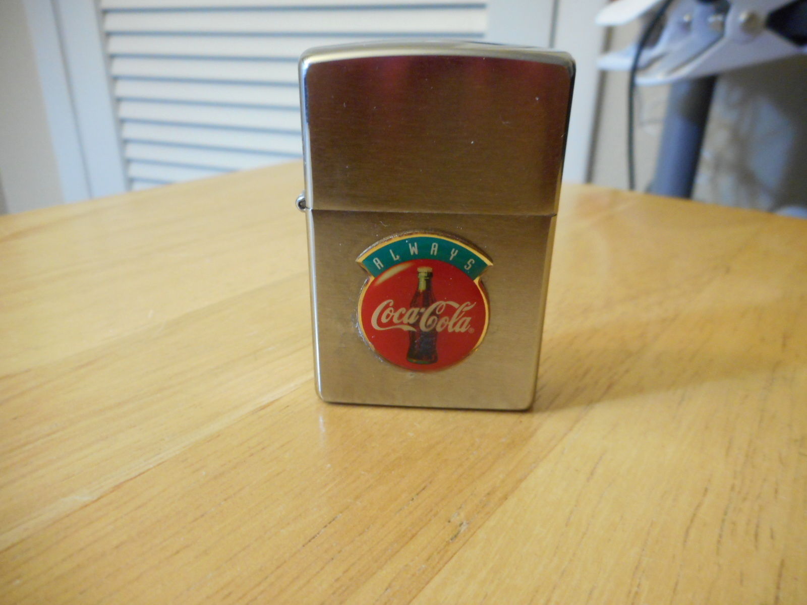Title (ebay affiliate link): Zippo-2015 with gold insert advertising for "Coca Cola"